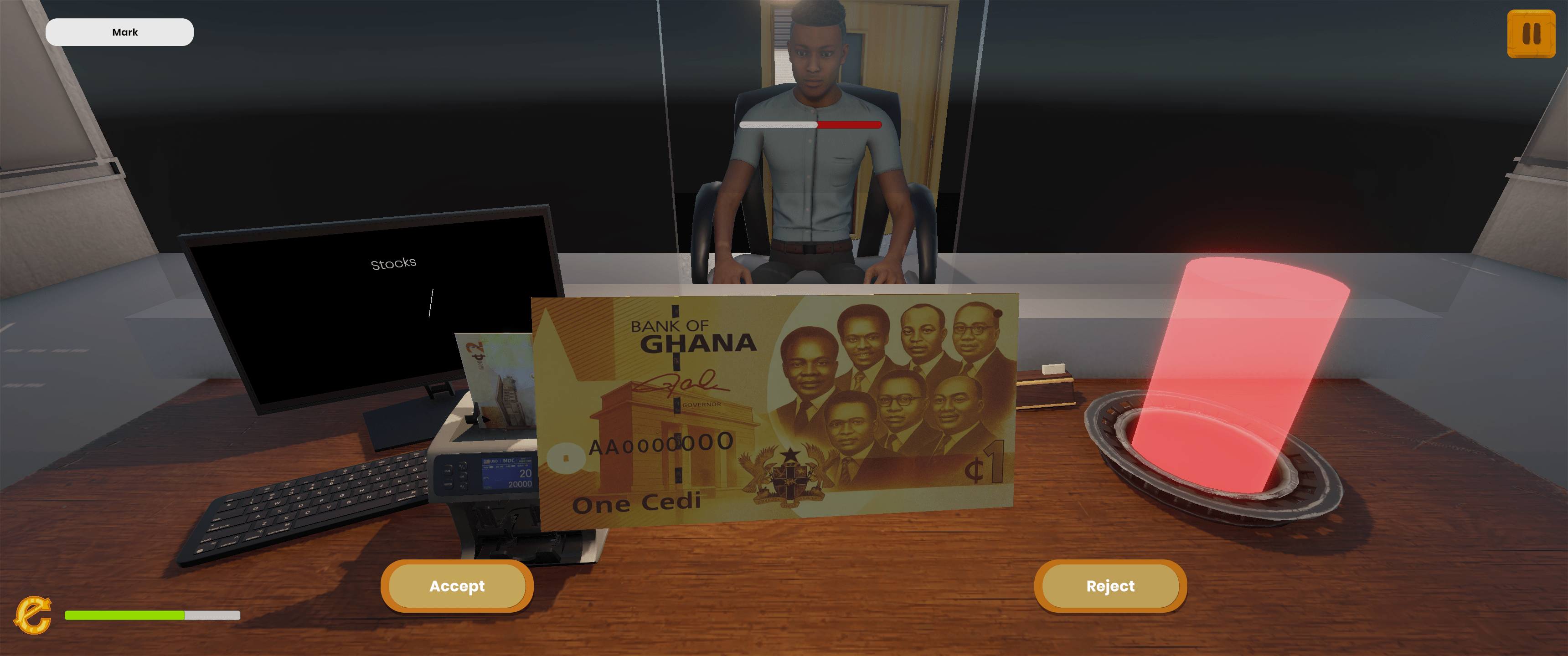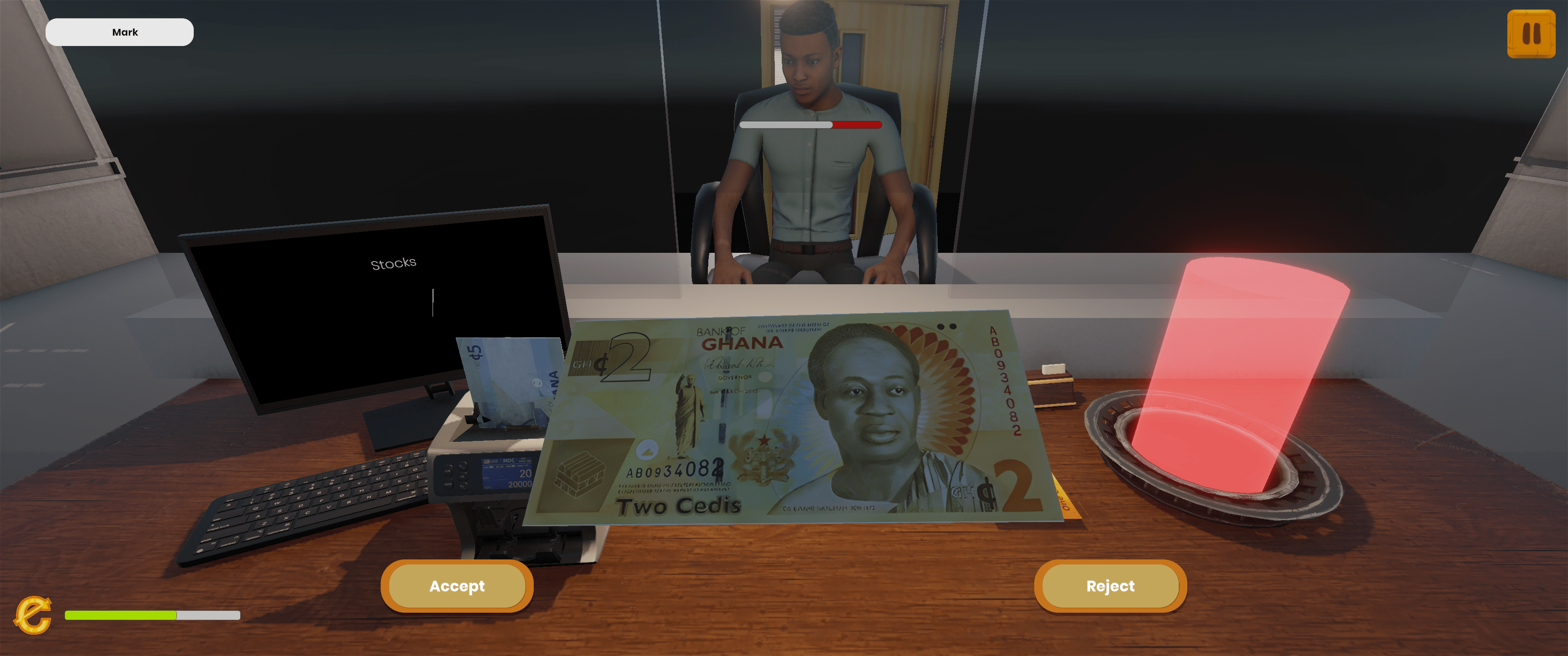 Step into the shoes of a cash inspector whose job is to spot counterfeit banknotes before they spread through the market. Customers will line up at your desk, each with stacks of cedi. It’s your duty to inspect, accept, or reject every note.
